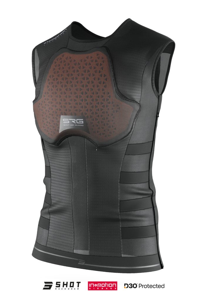 The SRG-1 is the world's first airbag vest specifically approved for motocross and enduro racing. Lightweight, breathable, and anatomically designed, it offers top-tier protection without restricting movement. Paired with the In&Motion system, it functions as an intelligent airbag that activates within milliseconds to protect vital areas.