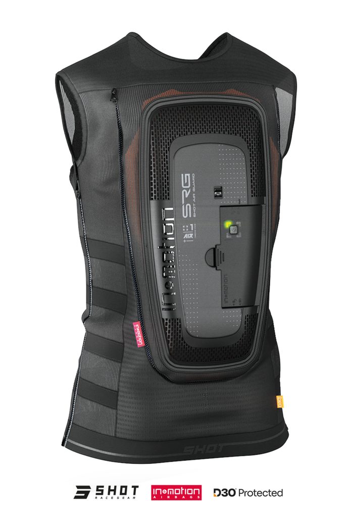 The SRG-1 is the world's first airbag vest specifically approved for motocross and enduro racing. Lightweight, breathable, and anatomically designed, it offers top-tier protection without restricting movement. Paired with the In&Motion system, it functions as an intelligent airbag that activates within milliseconds to protect vital areas.