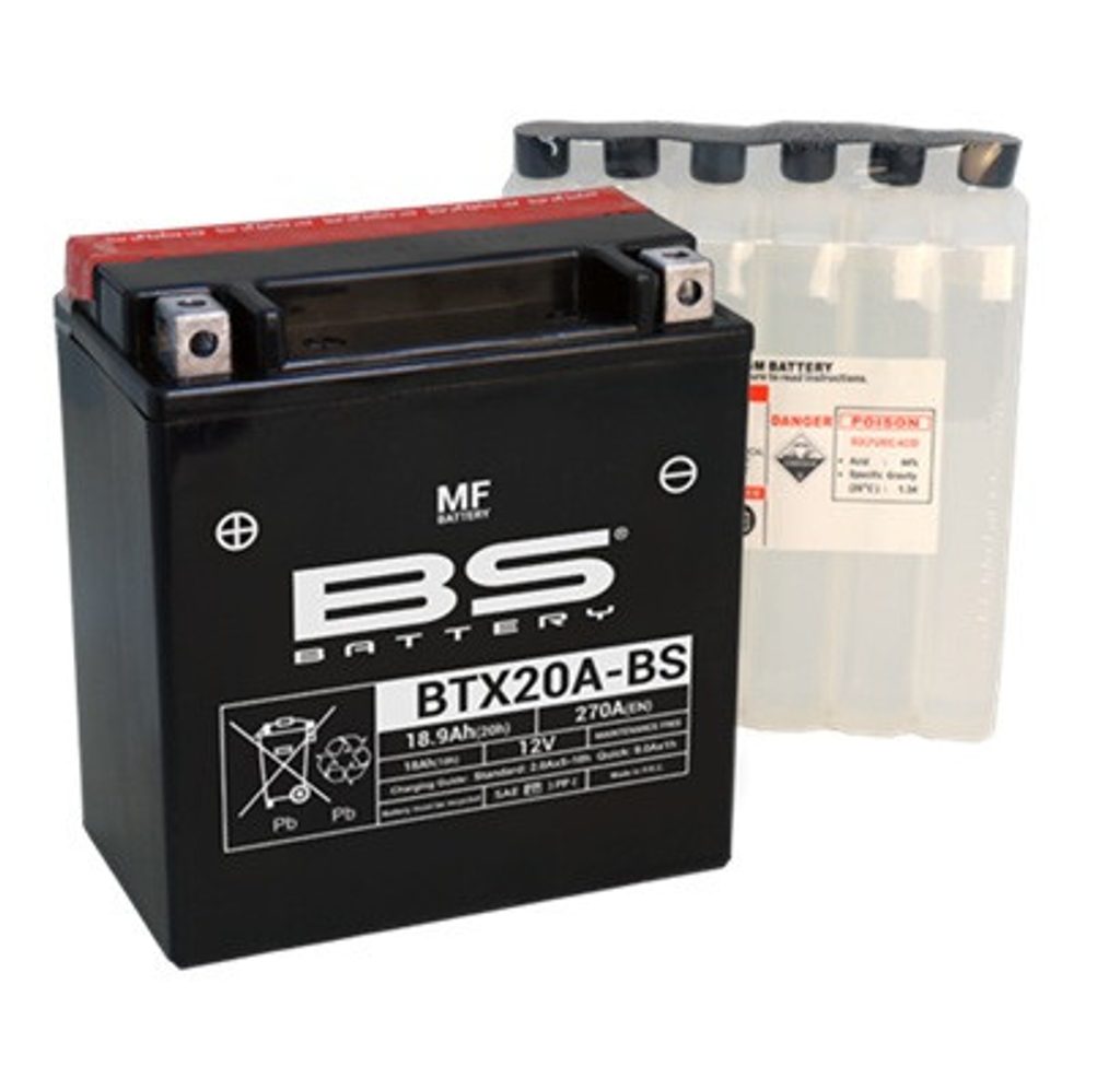 BTX20A-BS battery is a part of our MF range. Delivered with an acid pack, this 12V 18.9Ah battery must be activated by filling the acid before first use.