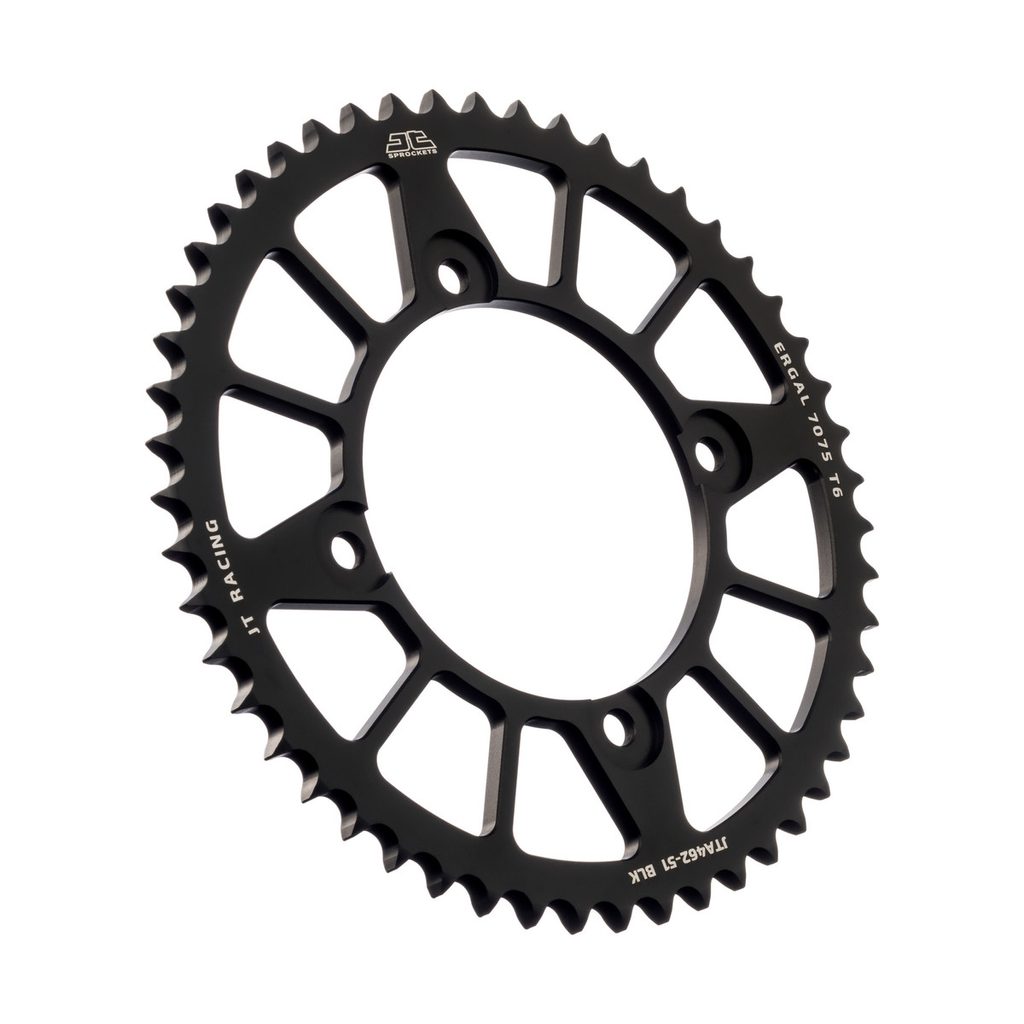 JT sprockets are made using only the best available materials. Aviation-grade 7075-T6 aluminium alloy for lightweight competition sprockets, SCM420 chromoly steel alloy for front sprockets, and we are the only sprocket manufacturer using the ultra-durable high carbon C49 steel for rear sprockets.