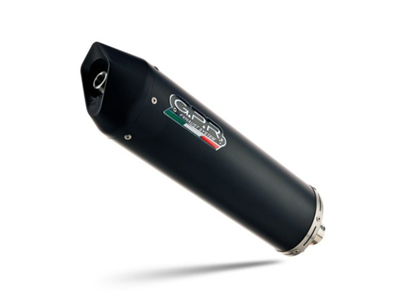 GPR's Furore Nero silencer has a black aluminum body, with avional caps made through CNC machining. It has a ceramic finish that withstands high temperatures, with an elliptical shape that measures 90mm x120mm.