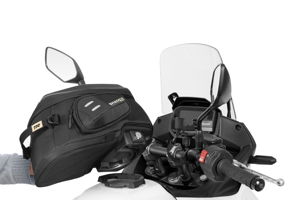 SHAD’s Click System is the evolution of Pin System tank bag fitting. It stands out for its ease of use and installation on the motorcycle, and because of the push button which allows quick unblocking by only pressing the button.