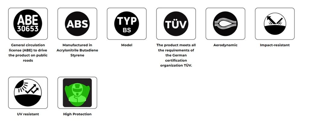Manufactured with the highest technologies, its components are made of aluminum and/or ABS materials that are highly resistant to impacts and UV rays, in turn they are light and durable. The plastic parts have a built-in surface treatment that improves the behavior against chemical agents and in turn also offers total protection against UV rays. This layer avoids the need to have to paint the engine spoiler. The metal supports are made of 2mm metal, with anti-corrosion treatment, resistant and easy to install.