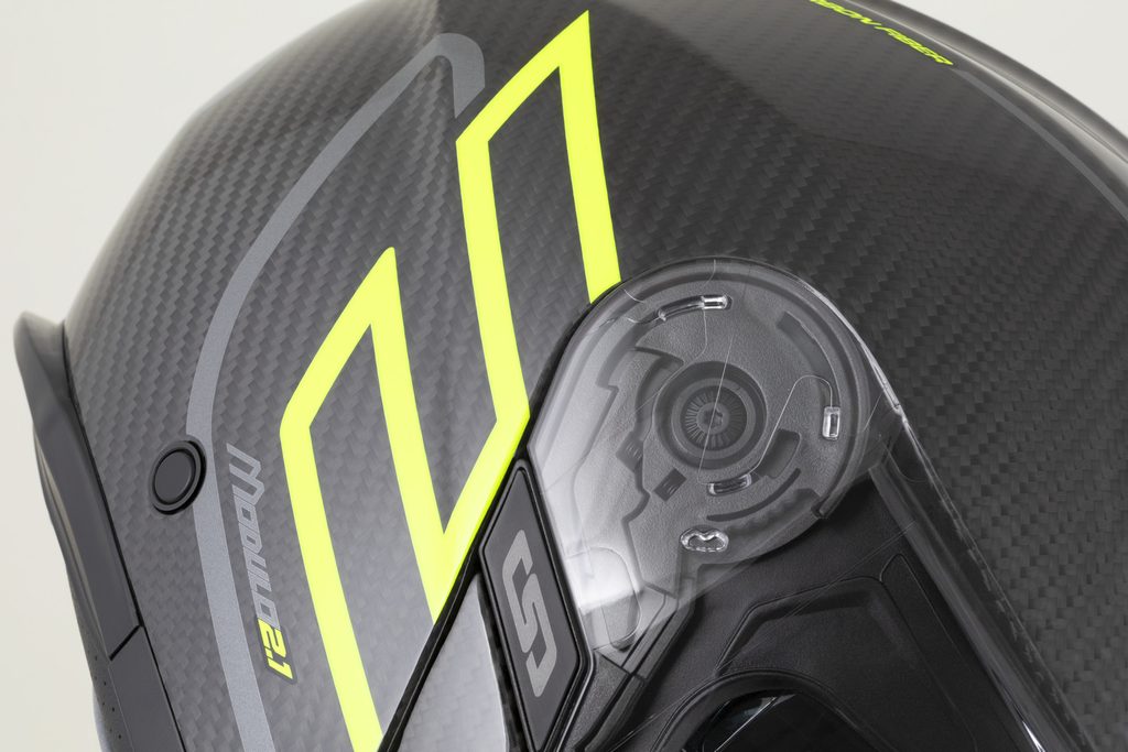 • Flip-up chin bar made of selected 3K carbon.