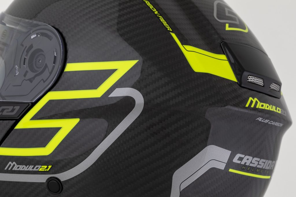 The Modulo 2.1 Plus Carbon helmet is a premium touring flip-up model with both the shell and flip-up section made from selected 3K carbon.