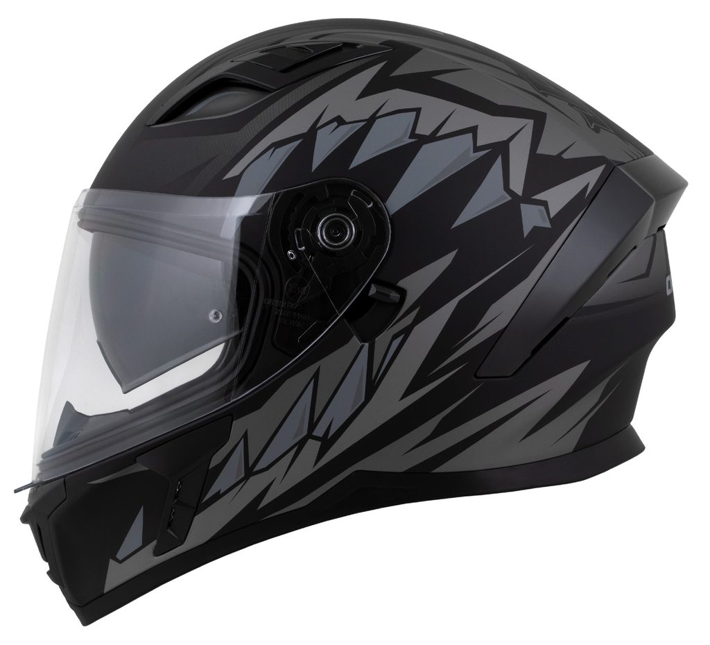 • Quick-release visor mechanism with multiple position settings and a locking tab to secure the visor in the closed position