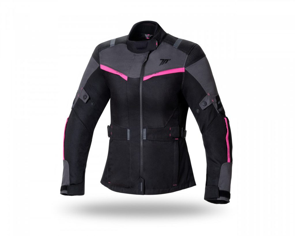 Mid-season Touring jacket for women. Filled with Prilation 75gr. Waterproof fabric. Made of high density polyester 600D. Ventilation zippers on front, back and arms. YKK main zipper and YKK and MAX secondary zippers. Button-adjustable arms. Velcro collar and cuff closures. Neoprene comfort collar with front padding. Adjustable waist. Removable CE-approved (EN1621) level 1 elbow and shoulder protectors. The protections can be replaced by Seventy Degrees level 2 protections (EN1621). Interior pocket for back protector (not included) level 2 SD-A10 certified to EN1621 standards