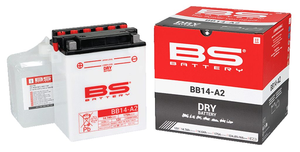 BB14-A2 battery is part of our DRY range. Specially designed to offer good performance and reliability, this 12V 14.7Ah conventional battery is delivered with an acid pack, must be activated before first use and has to be checked periodically.