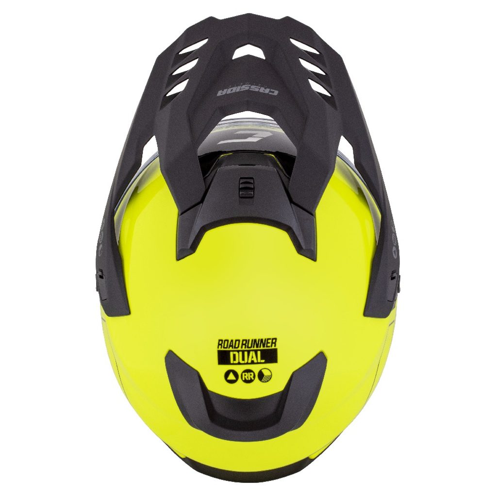 Motocross Helmet CASSIDA ROAD RUNNER DUAL yellow fluo/ black/ black matt peak 2XL
