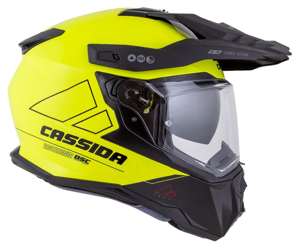 Motocross Helmet CASSIDA ROAD RUNNER DUAL yellow fluo/ black/ black matt peak M