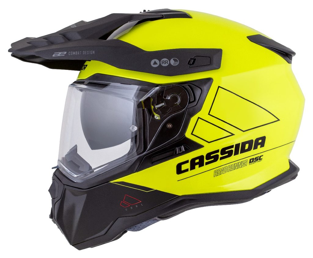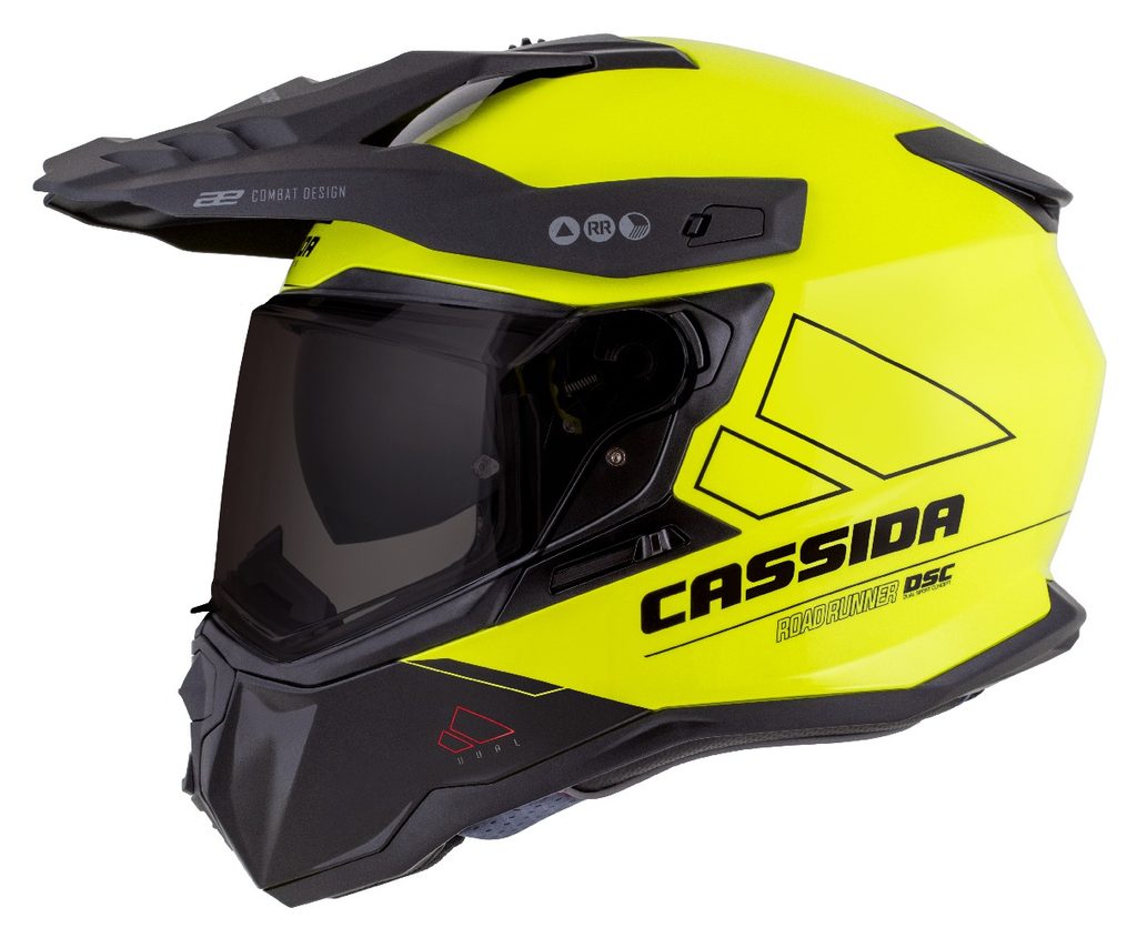 Motocross Helmet CASSIDA ROAD RUNNER DUAL yellow fluo/ black/ black matt peak S