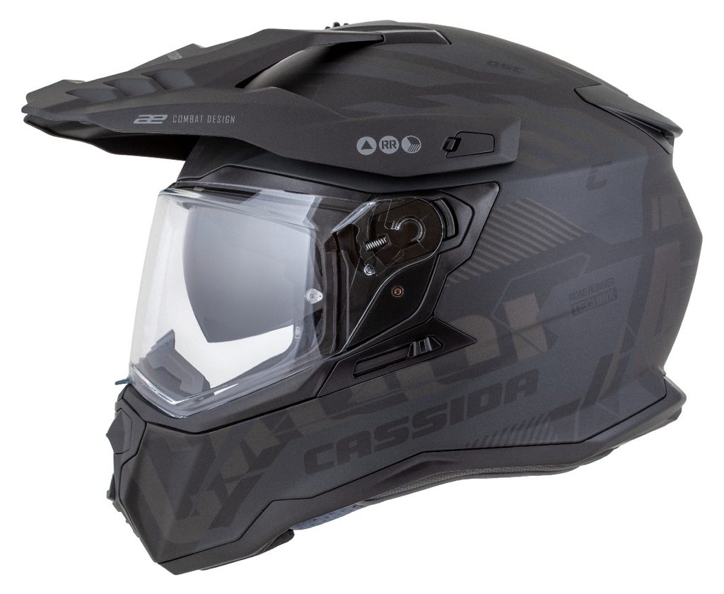 Motocross Helmet CASSIDA ROAD RUNNER TechniX black matt/ black/ grey/ black matt peak 2XL