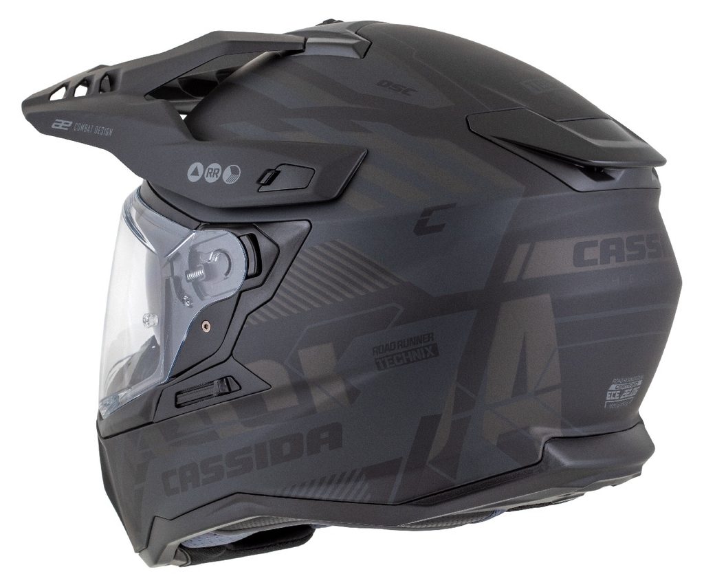 Motocross Helmet CASSIDA ROAD RUNNER TechniX black matt/ black/ grey/ black matt peak M