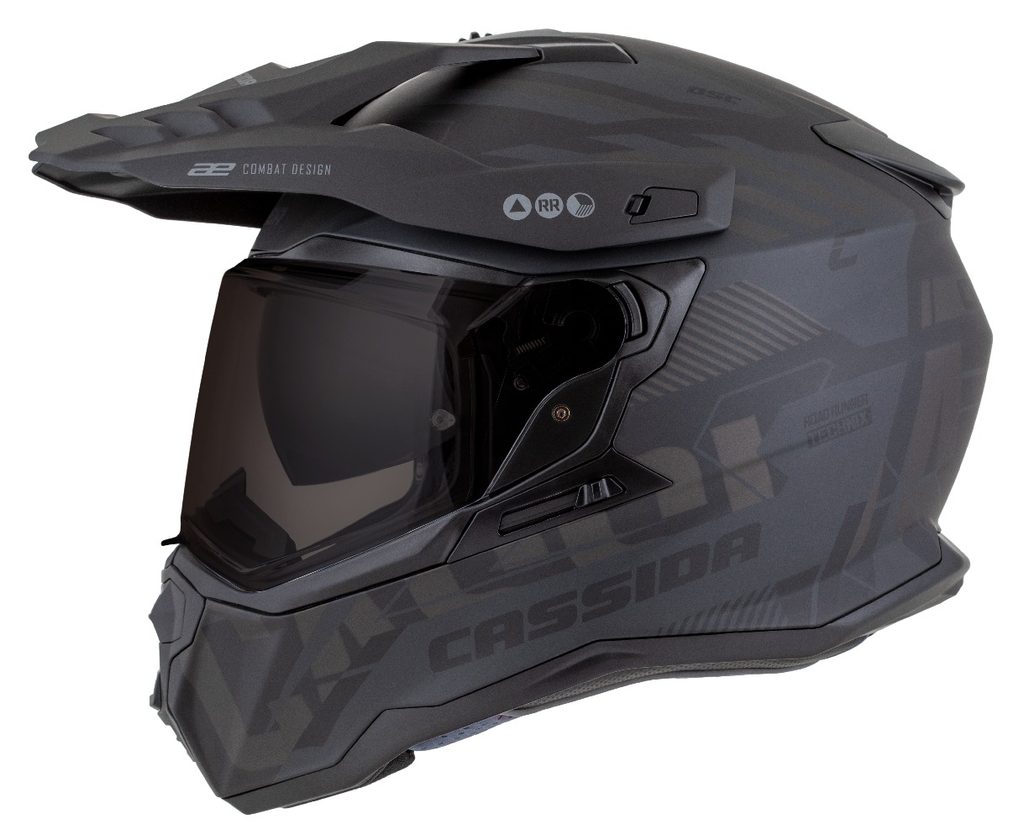 Motocross Helmet CASSIDA ROAD RUNNER TechniX black matt/ black/ grey/ black matt peak XL