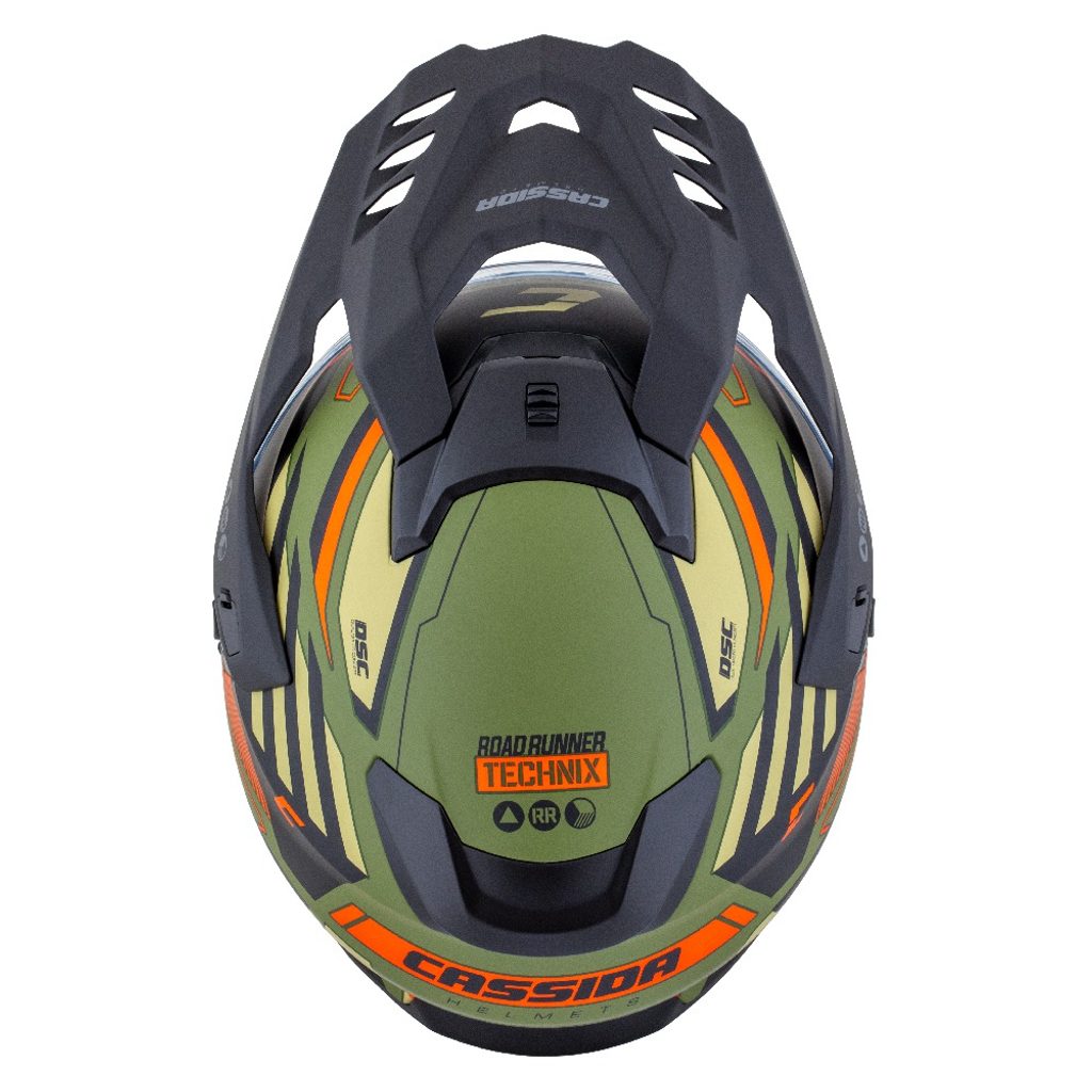 Motocross Helmet CASSIDA ROAD RUNNER TechniX green matt/ black/ orange/ grey/ black matt peak S