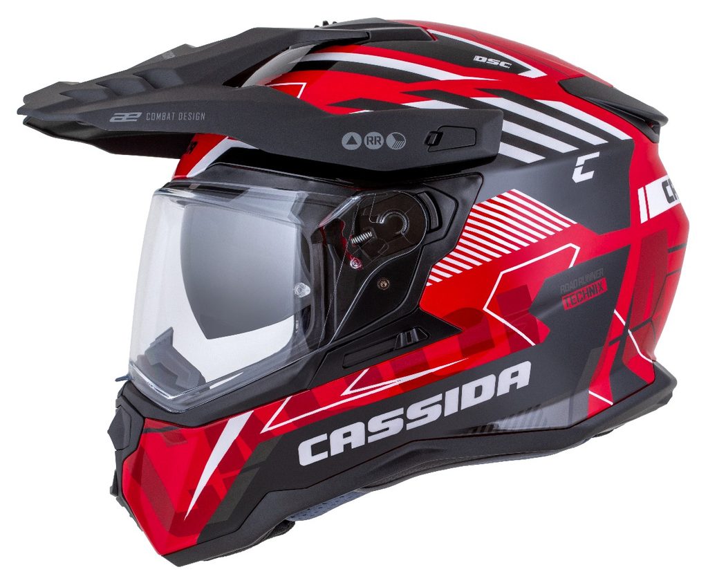 Motocross Helmet CASSIDA ROAD RUNNER TechniX red/ black/ white/ grey/ black matt peak XS