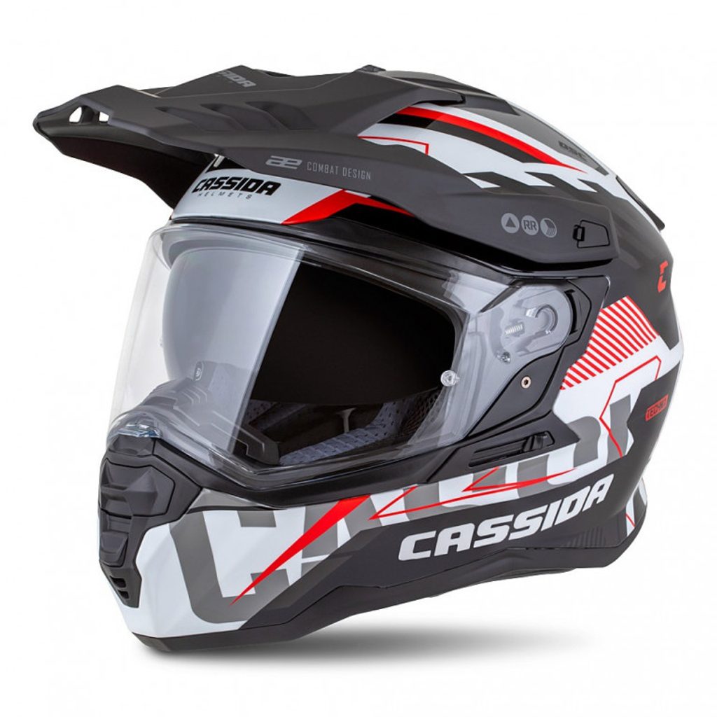 Motocross Helmet CASSIDA ROAD RUNNER TechniX white/ black/ red/ grey/ black matt peak M