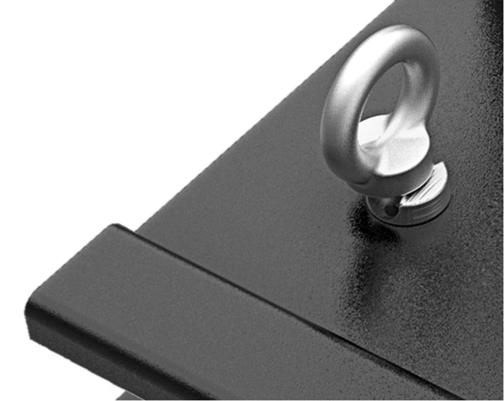 Sliding hooks and eyebolts for tie downs, sliding tool holders, quick-release coupling for compressed air and additional schuko socket make the Goldrake Dark Custom a multifunctional and unique motorcycle lift.