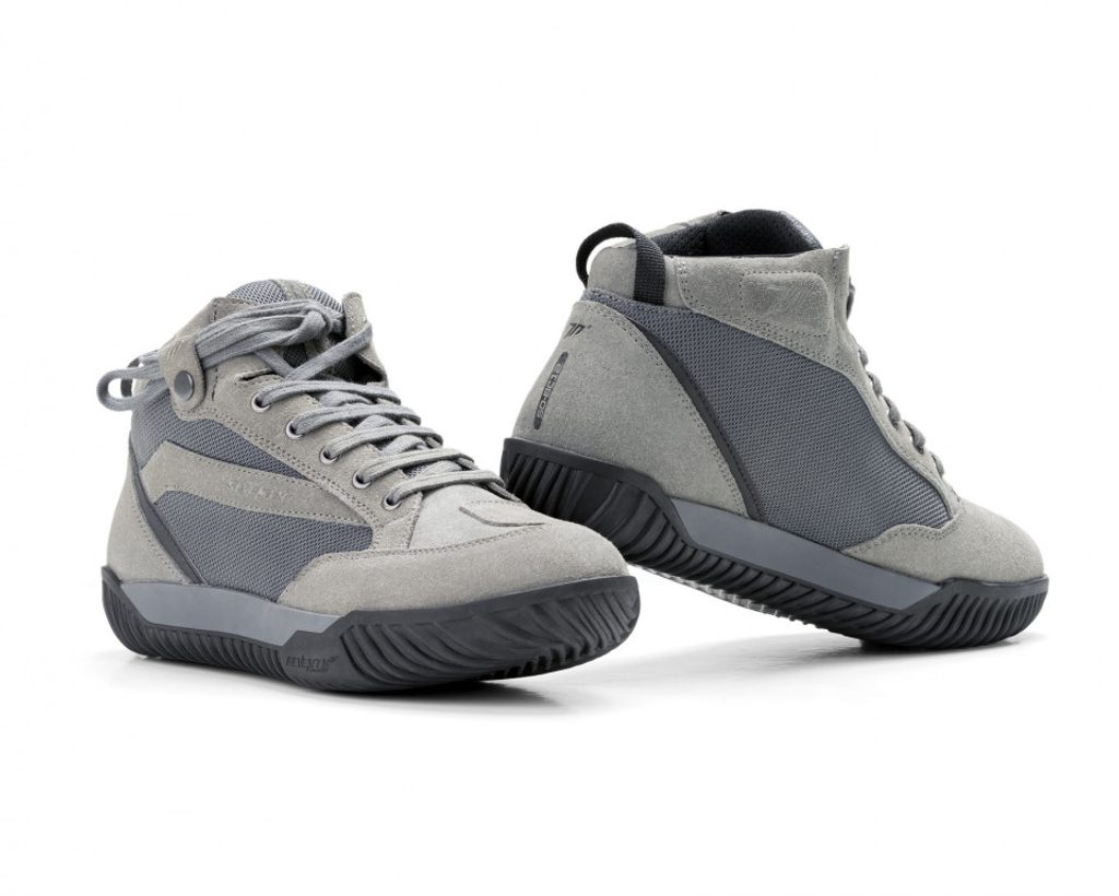 Urban waterproof low-top boot for men. Made of suede and nylon with built-in reflectors for greater visibility. Laced closure, with metal eyelets and lace fastening strap at the top for greater safety. Protections in heel and toe, with reinforcement in the instep for the gear shifting. Removable foam insole and non-slip rubber sole with exclusive design.