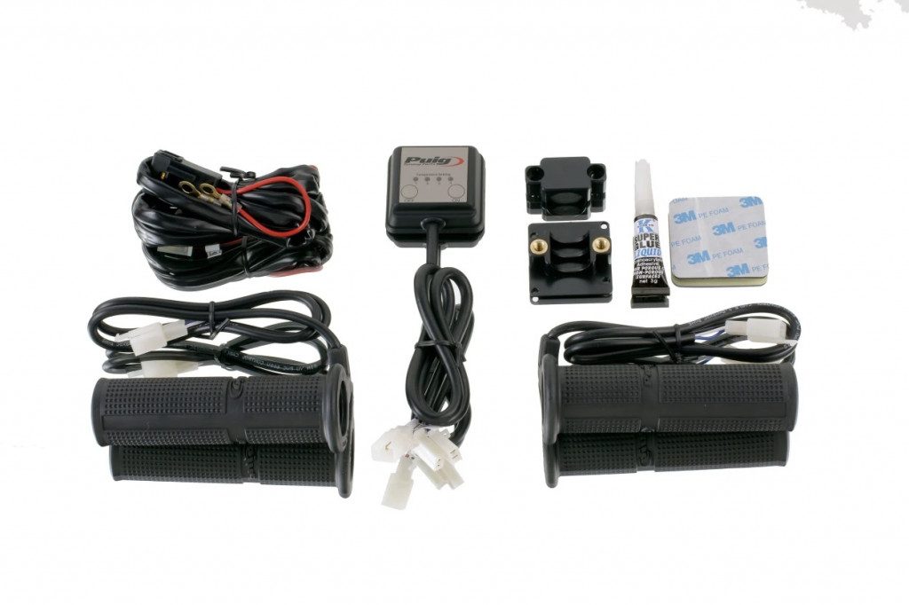 Heated grip set, for the motorcycle with 22 mm handlebar. Designed as the essential accessory to safely perform routes in especially cold areas or for winter season, these heated grips have an integrated resistance that heats them up quickly as soon as the driver puts them into operation. To manage the level of heat received on the hands, a small-sized thermostat has been designed that does not interfere with the use of other motorcycle controls, and has two buttons that allow a very easy, reliable and intuitive use. It can be operated easily even with gloves and allows to configure up to 4 levels of output temperature.