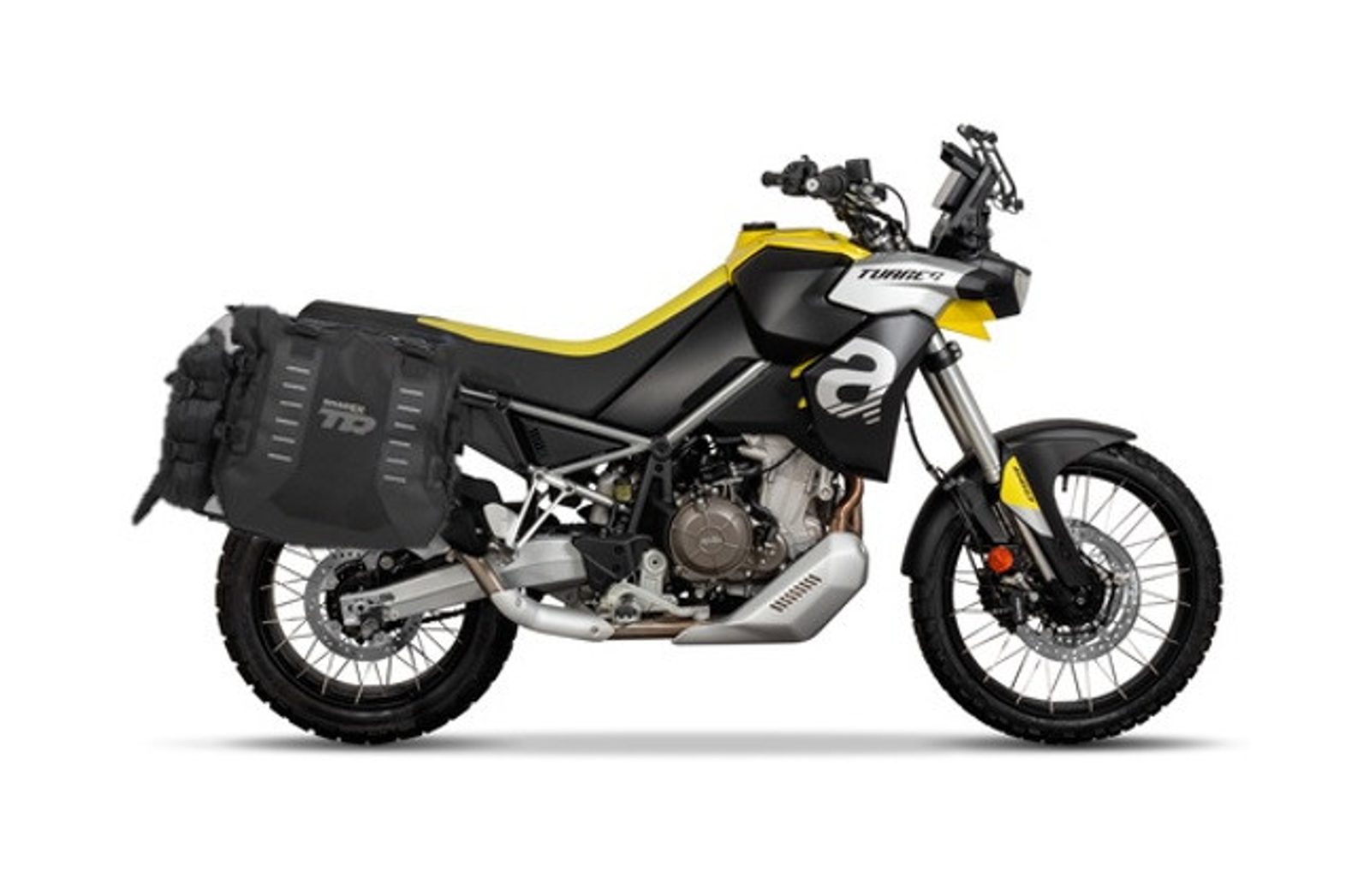 The ADVENTURE TERRA SHAD kit includes a set of TR40 off-road saddlebags and a 4P SYSTEM mounting kit for fastening.