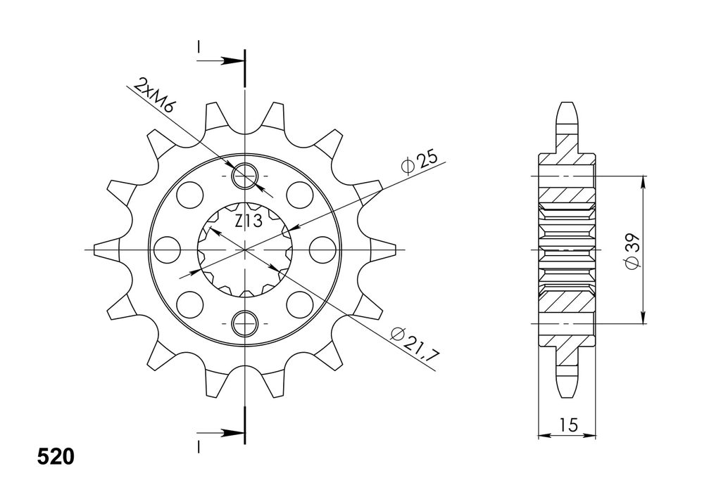 Every sprocket has weight reduction, with radial holes or radial slots (Forged models only) .
