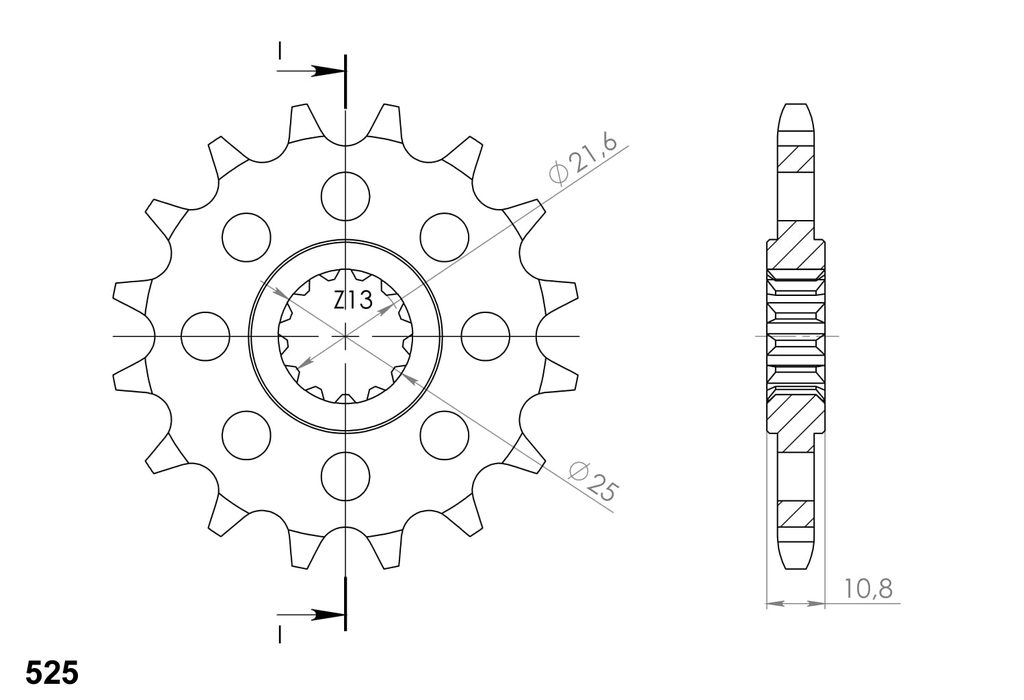 Every sprocket has weight reduction, with radial holes or radial slots (Forged models only) .