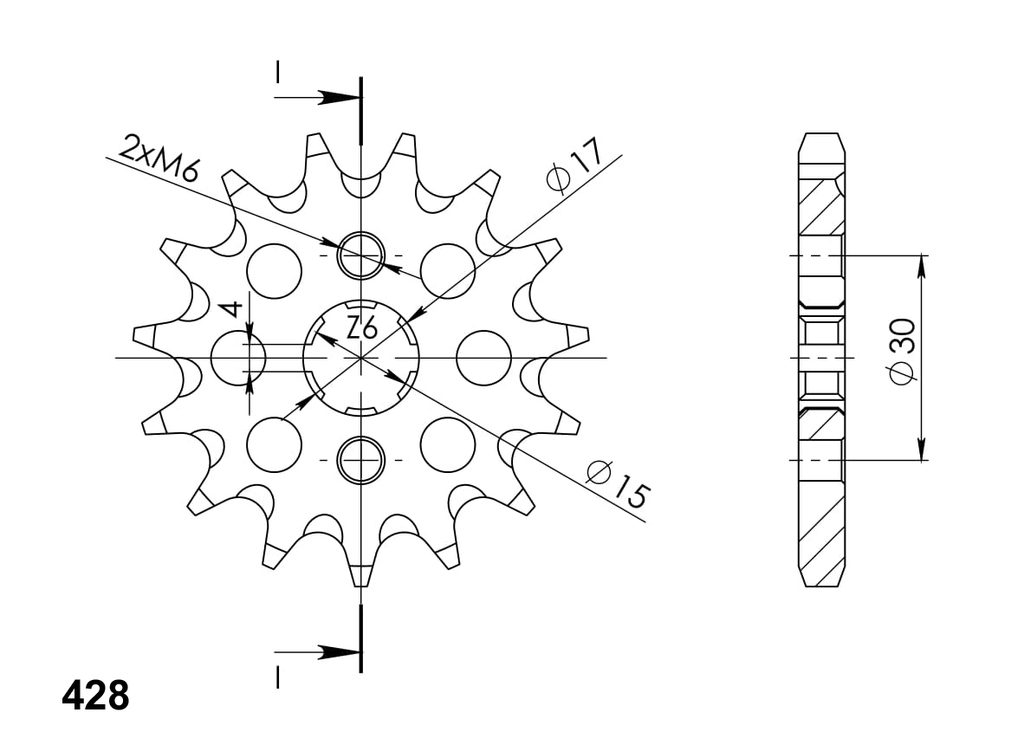 Every sprocket has weight reduction, with radial holes or radial slots (Forged models only) .