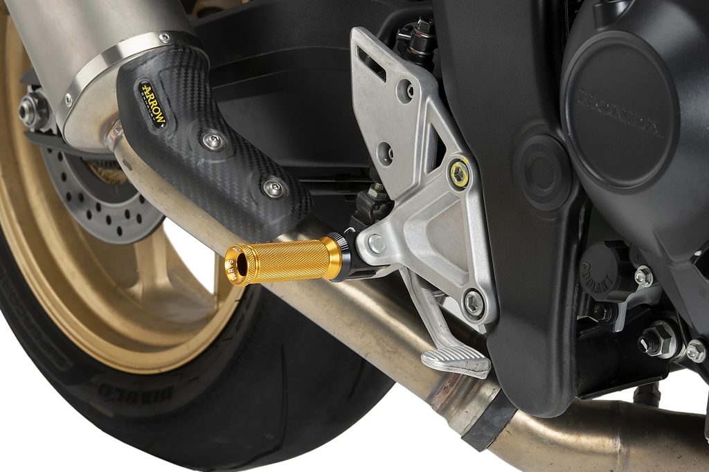 The diamond-pattern knurling has been developed to guarantee optimal foot grip in any situation, even in rainy conditions or during intensive use. This non-slip texture provides total control over the motorcycle and enhances the feeling of connection between rider and machine.
