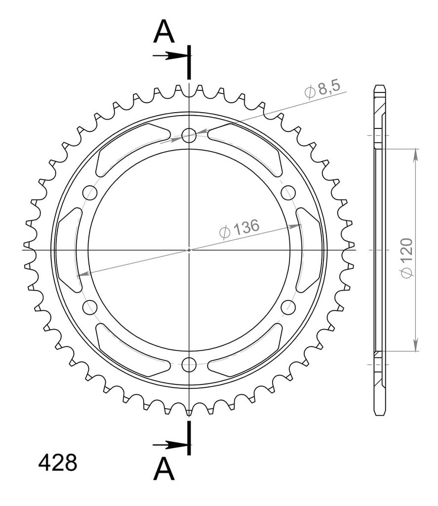 Zadnji verižnik (zobnik) SUPERSPROX RFE-1847:47-BLK črna 47T, 428